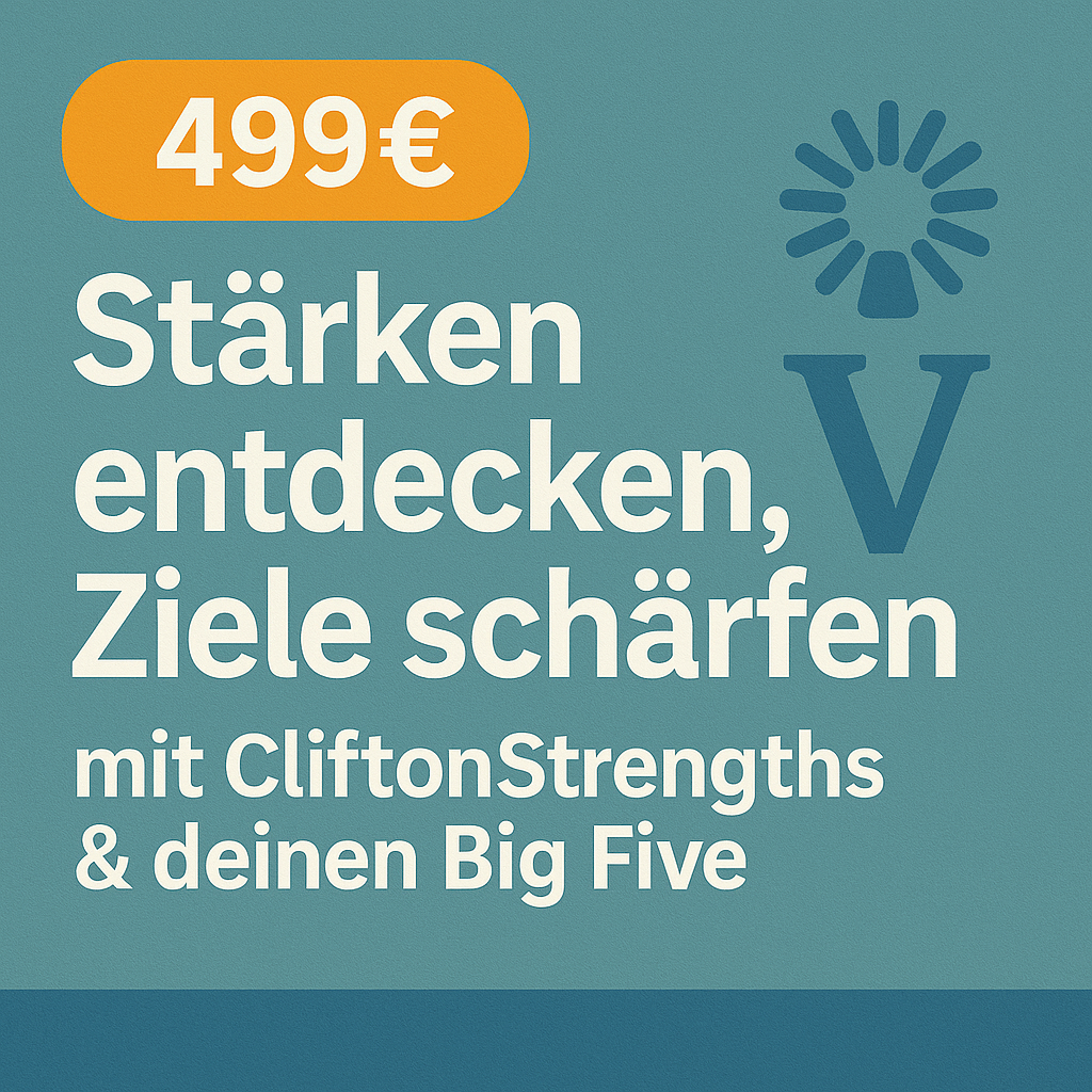 - Stärkenanalyse & Coaching-Session: Wir gehen deine Stärken gemeinsam durch und reflektieren, was sie heute für dich bedeuten.